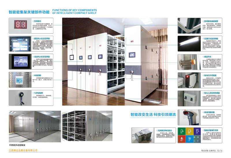 公司規(guī)模大、起點高、設備先進、技術力量雄厚。現代化廠房占地面積12000平方米,建筑面積6600平方米。員工總數為116人。其中:高級管理人員12人;中級以上專業技術人員38人。主導產品有密集架、書架、貨架、文件柜、保險柜、醫(yī)用設備、信報箱、軍用床、餐桌椅等九大系列120余個品種。